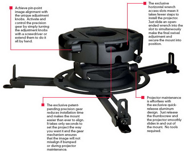 • Patent pending precision gear provides accurate projector image alignment